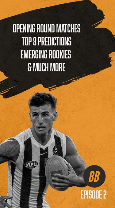 Visual style (colour palette, typography, layout) matching the tone of the podcast — bold, dynamic, playful, with a sports edge.